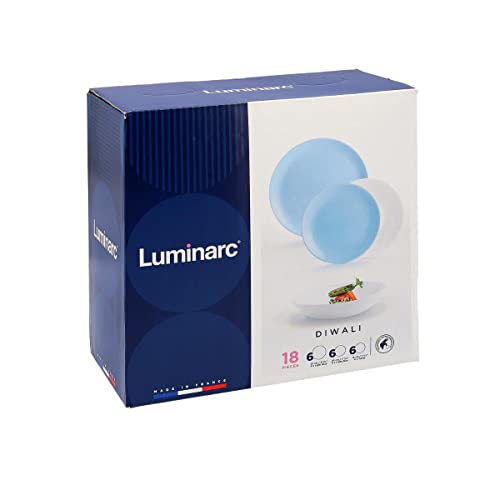 Luminarc Servizio Tavola 18 Pezzi, Diwali, Vetro Opale, Blu e Bianco