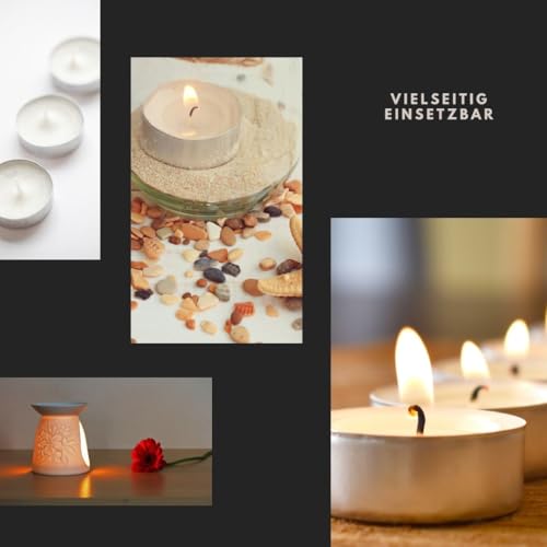 Durata: i lumini misurano circa 37,5 mm (diametro) x circa 15 mm (altezza) grande, per una durata di circa 4 ore. Questo è certificato secondo il marchio di qualità RAL. Le candele offrono una combustione tranquilla e uniforme e possono essere riaccese senza problemi.