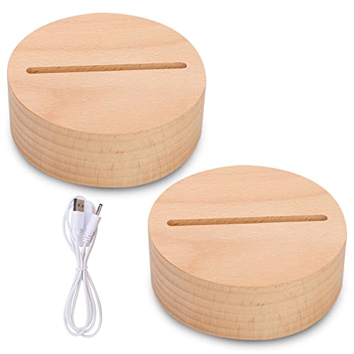 Base Luminosa a LED in Legno, 2 pezzi LED luci display base, Basamento di Base in Legno decorativa per fai da te in acrilico, bianco caldo (rotondo)