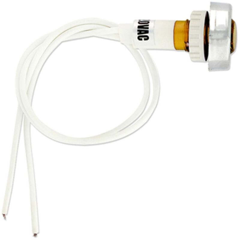 Spia luminosa di colore giallo tonda DIAMETRO Ø 10mm con fili ghiera cromata220Volt