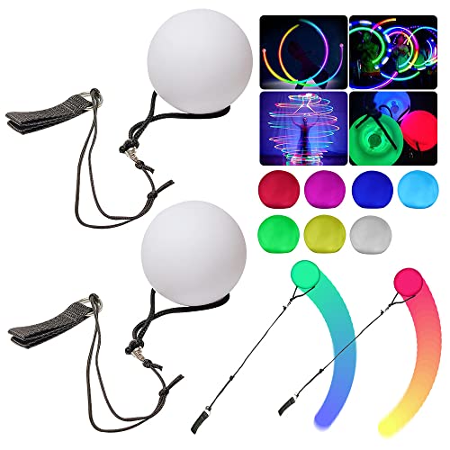 LED Poi Luminosi, 2 Bolas LED Poi Giocoleria con Colori Arcobaleno Ed Effetto Stroboscopico, Palline Poi per Principianti, Professionisti, Poi LED Palla per Bambini e Adulti