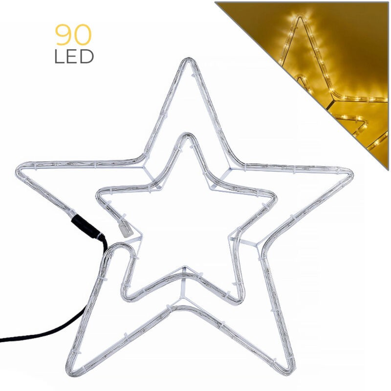 Stella luminosa 90 led per esterni con 8 giochi di luce con luce calda Stella led luminosa decorativa per interni ed esterni con grado di protezione IP44 Dimensioni 49x49 cm con cavo di alimentazione di lunghezza 1,5mt con spina schuko per diretta entrata in corrente Munita di controller con 8 giochi di luce impostabili