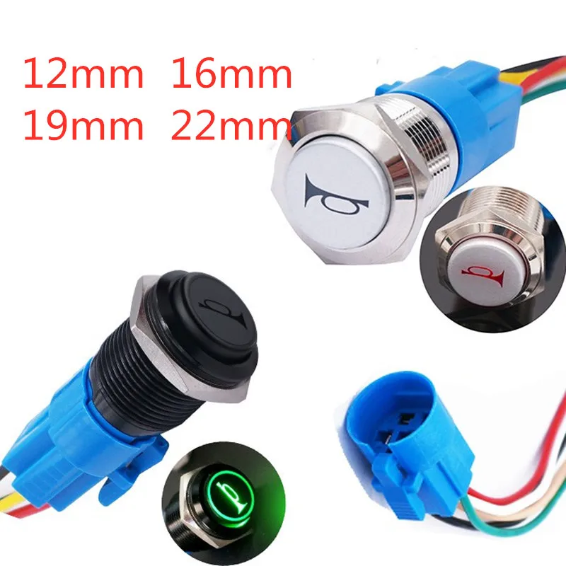 16mm 19mm luminous horn symbol Momentary button switch with luminous horn symbol