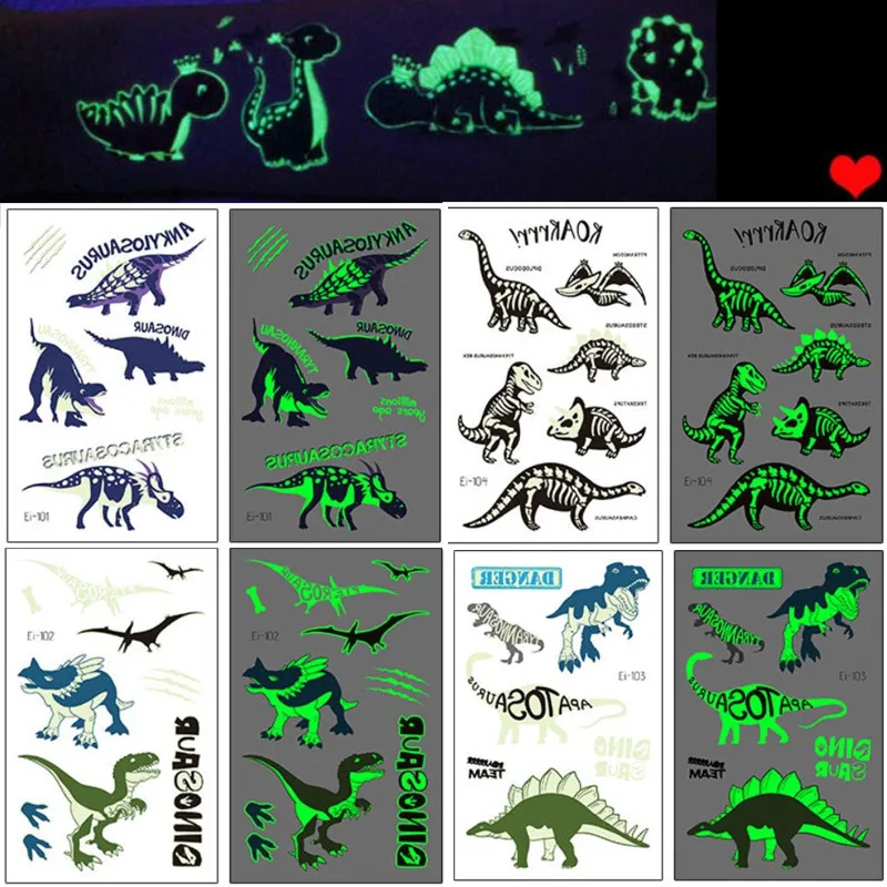 Luminous Kids Tattoo Stickers Cute Dinosaur Mermaid Glowing Stickers Temporary on Face Arm Leg for Child Body Art Birthday Party