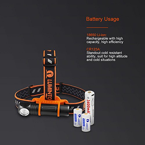 Utilizza l CREE XP HD LED con una durata di 50.000 ore, compatibile con 18650 o due kaeltebestaendigen CR123 A batterie