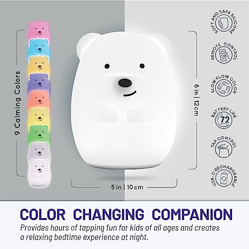 Lumipets Luce Notturna per Bambini - Luce LED bimbi e prima infanzia - Luce notte bambini in silicone a forma di simpatico animaletto - Lampada notturna con luci cangianti per cameretta neonato (Bear)