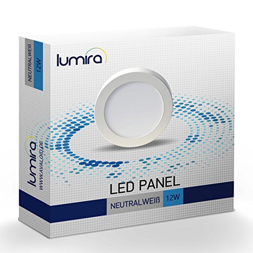 Lumira 12 W LED Panel, rotondo, diametro 170 mm, Scatola di Faretto Soffitto della lampada del soffitto, 12 Watt, equivalente a 100 W, materiale di fissaggio e trasformatore, 900 Lumen, Bianco neutro 12.00 W 230.00 voltsV