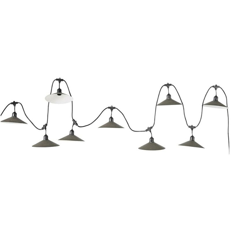 Luci a stringa E27 collegabili: Vinty Raccordable è una luce a stringa con prese E27 dotate di ganci per poterle appendere come si desidera. Grazie al suo sistema di estensione è possibile collegare 10 ghirlande contemporaneamente per avere una bella lunghezza di cavo e ancora più luce. Questa ghirlanda luminosa con paralume in acciaio si distingue per il suo design retrò e di tendenza. È ideale per illuminare le vostre serate e vi piacerà il suo design e il suo lato vintage per illuminare i vostri eventi più belli. Uso interno/esterno: dopo aver collegato la ghirlanda luminosa alla rete elettrica (presa da 220 V), potrete utilizzare questa ghirlanda retrò ovunque, sia all'interno che all'esterno. La ghirlanda raccordabile Vinty porterà una decorazione chic e di tendenza a casa vostra. Pratica: questa ghirlanda luminosa a LED può essere utilizzata sia all'interno che all'esterno. Porterà in terrazza o in giardino un'atmosfera festosa in uno spirito chic da guinguette. In camera da