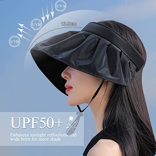LumiSyne 2 In 1 Cappello Da Sole Donna Cerchietto Clip On Visiera Parasole Cappello a Conchiglia Tesa Larga Floppy UPF 50+ Pieghevole Cappello Da Spiaggia Berretti Visiera Con Sottogola Viaggio Estivo