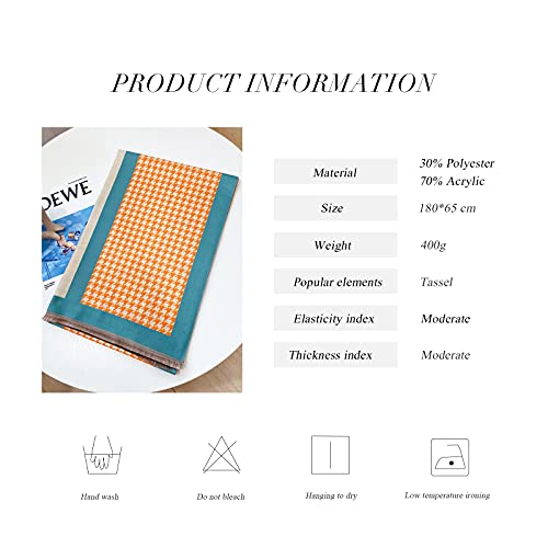 STILE CLASSICO: Una sciarpa con un motivo unico può migliorare istantaneamente il tuo fascino. Pied de poule classico con la corrispondenza artistica di colore, alla moda ed elegante, mai fuori moda. Il design del dettaglio della nappa ammorbidisce le linee generali della sciarpa, che può rendere il tuo outfit più raffinato.
