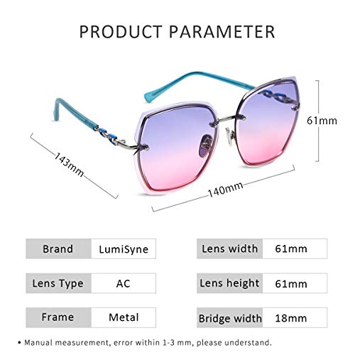 LumiSyne Occhiali Da Sole Senza Montatura Rettangolari Donna Oversized Occhiali Da Vista Gradiente Trasparenti Lente Da Taglio Di Diamanti Montatura Decorata Con Strass UV400(Blu rosa)