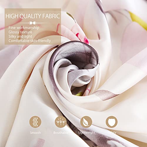 LumiSyne Sciarpa Di Seta Donna Fiore Stampato Moda Ed Elegante Stile Scialle Lungo e Morbido Foulard Calda Stole Protezione Solare Quattro Stagioni (Beige)