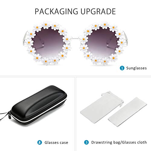 LumiSyne Simpatici Occhiali Da Sole Margherita Donna Uomo Cornice Rotonda Occhiali Decorazioni Floreali UV400 Occhiali Da Festa Puntelli Di Fotografia Occhiali Per Coppie Viaggio Spiaggia Bianca