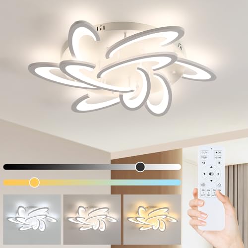 Plafoniera LED Dimmerabile Lumiup, Plafoniera LED Fiore 45W con telecomando, Lampadario da soggiorno in acrilico 3000K 6500K, Lampadario LED per Sala da Pranzo, Cucina