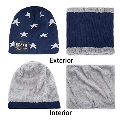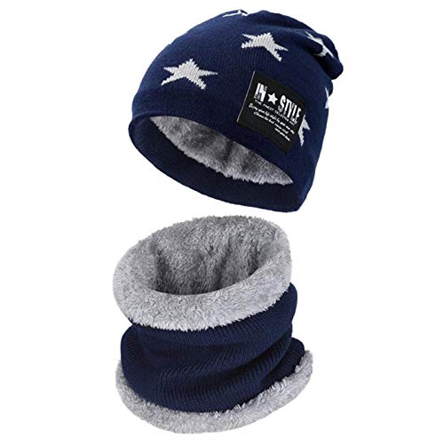 Lumsinker 2 Pezzi Stelle a Maglia Cappelli Sciarpa Impostato Bambini Cappello Beanie Marina