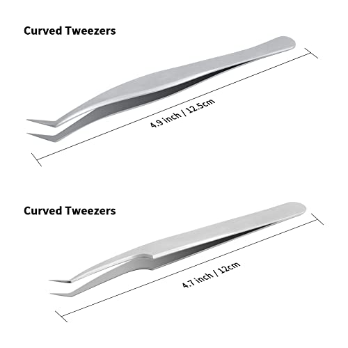 Lunamoon Pinzette Ciglia Professionali Pinzette per Ciglia Volume 3D 6D Pinzette Dritta e Pinzette Curva in Acciaio Inox 2pz (tweezers set04)