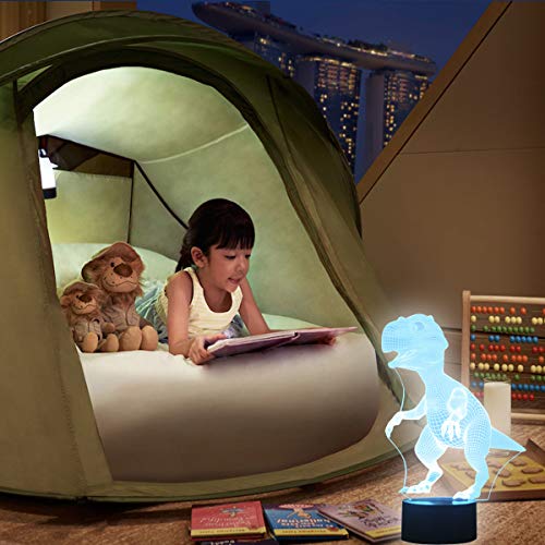 Lunaoo Luce Notte Bambini, Lampada 3D Dinosauro Lampada da Tavolo, 7 Cambiamento di Colore Luce Notturna per Cameretta Comodino