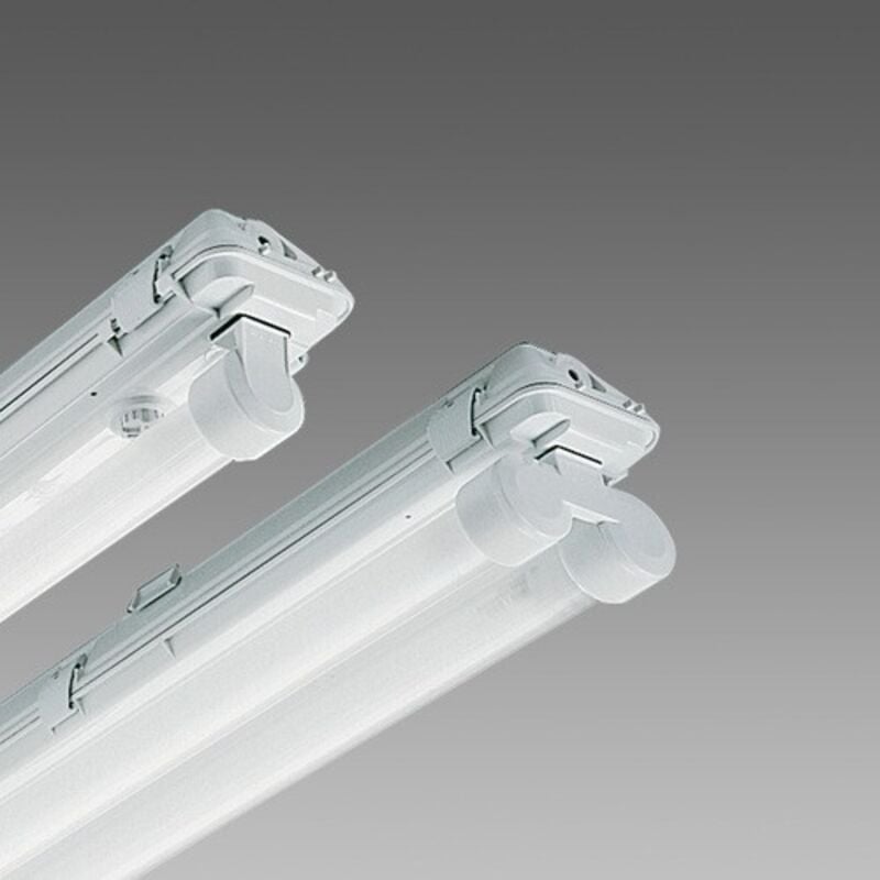 infrangibile ed autoestinguente V2, stabilizzata ai raggi UV, antingiallimento. PORTALAMPADA: A tenuta stagna in policarbonato bianco e contatti in bronzo fosforoso. Attacco G13. CABLAGGIO: Alimentazione 230V/50Hz. Cavetto rigido sezione 0.50 mm² rivestito con PVC-HT resistente a 90°C, secondo le norme CEI 20-20. Morsettiera 2P, con massima sezione ammessa dei conduttori 4 mm². EQUIPAGGIAMENTO: Passacavo di tenuta stagna in gomma diam. 1/2 pollice gas (cavo min. diam. 9 max diam.12). Gancio a molla: in acciaio inox, per la sospensione con catenelle. Guarnizione in materiale ecologico di poliuretano espanso. MONTAGGIO: A sospensione, a plafone o su canale civile.
