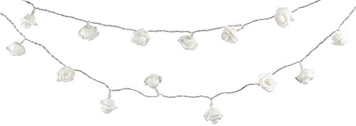 10 rose bianche:Ø 40 mm ciascuno • 2 modalità di illuminazione:Luce fissa e lampeggiante • Lunghezza totale della catena leggera: 3 m (inclusa linea di alimentazione da 2 m) • Peso: 112 gr