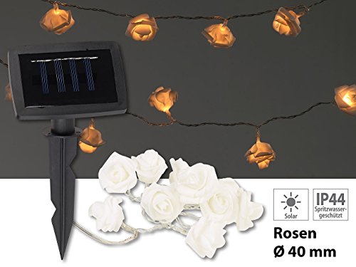 Lunartec Catene solari: Catena luminosa LED solare con 10 rose bianche, bianco caldo, IP44, 1 m (Attacco per pizza luci fatate Solare)