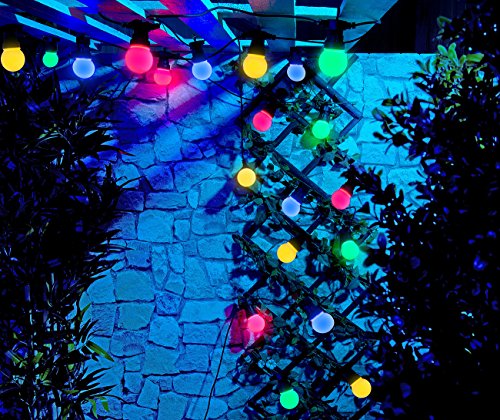 Lunartec festa illuminazione: Catena luminosa a LED per feste con 20 lampadine a LED, 6 watt, 1.2V 4 colori, 9,5 m (Illuminazione per feste lampadine, luci fatate Forma a pera, Luci fatate su filo)