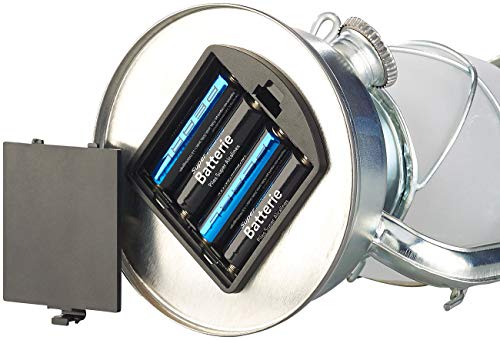 Apparecchio dal design autentico della lanterna dell'uragano • Interruttore on / off sulla vite di riempimento • Alimentazione elettrica: 4 batterie tipo AA / Mignon (da ordinare separatamente)