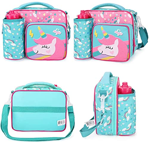 IvyH Lunch Box Kids Borsa Termica per Il Pranzo per Ragazze, Borsa Riutilizzabile per Il Pranzo Carina con Portabottiglie per Bambini in età Scolare Consigliata dai 3 Anni in su, 24×8×22 cm