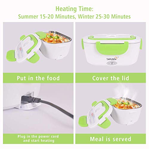 Lunch Box Elettrico per Auto, 40W 12V con Due Scomparti e Cucchiaio. Vassoio Estraibile Portatile in Acciaio Inossidabile da 1,5 l (Verde)