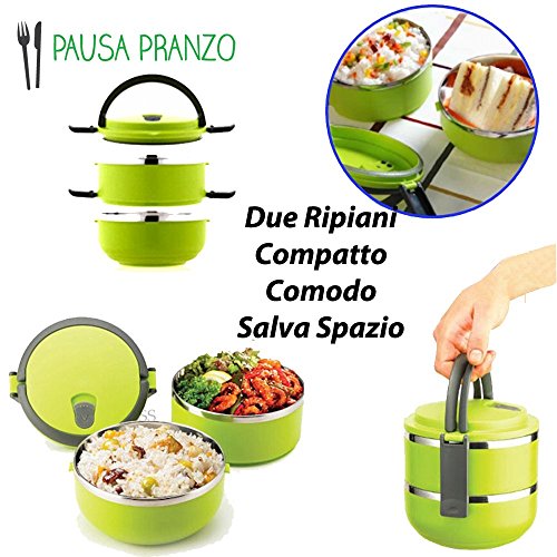 Lunch Box PORTAVIVANDE PORTA VIVANDE PORTAPIETANZE 3 PIANI CONTENITORE TERMICO 2, 1 LITRI (Azzurro)