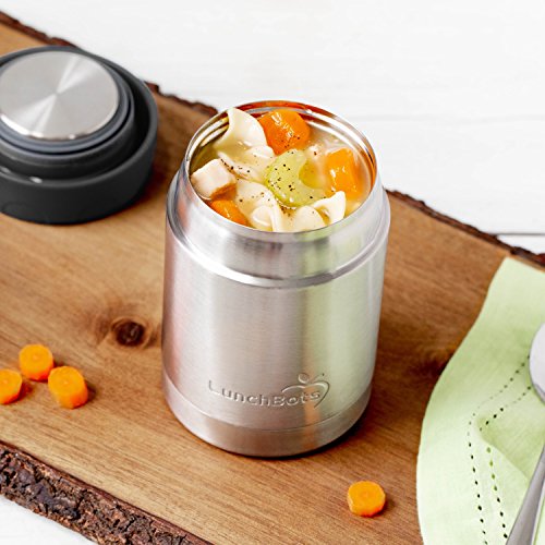 LunchBots Thermal 350ml. Con Interno Completamente in Acciaio Inossidabile - Contenitore per Alimenti Isolante che Tiene Caldo per 6 Ore o Freddo per 12 - Contenitore Ermetico Termico da Zuppe per Comodità Portatile - Nero