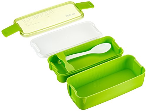 Lunchbox/Bento Box, Contenitore Per Il Pranzo,Scatole Bento MACDIAZ Microonde,Contenitori Pranzo 2 Livelli Con Porta Posate Per Bambini,Verde