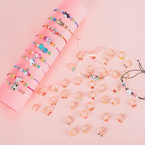 LUNEKUCK Set di 48 Anelli e Braccialetti dell'Amicizia per Ragazze, 36 Anelli e 12 Pezzi Braccialetti Regolabili con Modelli di Cani e Gatti, Gioielli con Unicorni per Regali di Compleanno