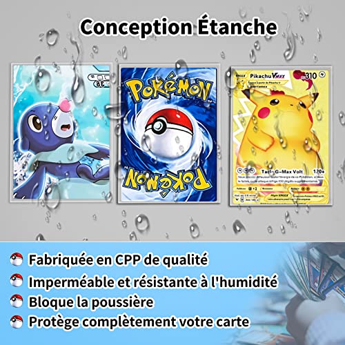 【Design impermeabile】: questa protezione per carte Pokemon è realizzata in CPP di qualità, il materiale della protezione della scheda ha una buona impermeabilità, può essere impermeabile e resistente all'umidità, e blocca la polvere, protegge completamente la scheda.