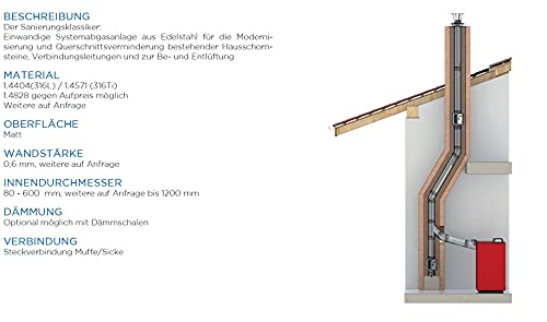 Lunghezza element EW satinata fumaiuolo -, con 250 mm, 500 mm, o di 1000 mm di lunghezza e di diametro 120 mm fino a 200 mm di diametro;