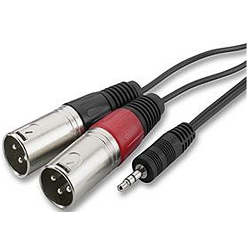 Cavo AV, 3,5 mm 3P TO 2 x XLR PLGS, 3 m lunghezza del cavo Imperial 3 m Metric lunghezza cavo 3 m con connettore tipo A 3,5 mm stereo Jack plug connettore di tipo B XLR spina, 3 vie x 2, SVHC no SVHC lunghezza cavo 3 m colore Nero Cavo Adattatore audio per il collegamento di apparecchiature audio consumer come quella dei pc e MP3 players per apparecchiature audio professionali come miscelatori e multi-traccia per la registrazione. Sbilanciate 3,5 mm stereo Jack plug a destra e a sinistra spine connettori XLR in metallo con rilievi ceppo in gomma