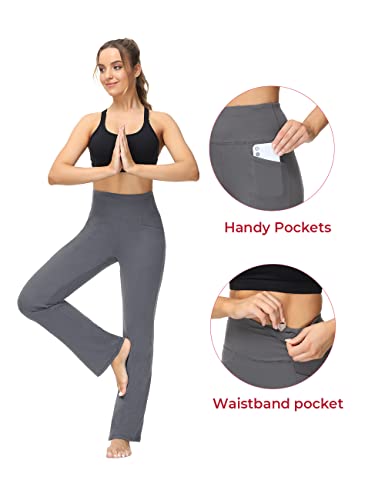LUNGO FIT Bootcut Pantaloni Yoga per le donne con tasche Bootleg Pantaloni Vita Alta Controllo Pancia Delle Donne Svasati Pantaloni Allenamento... - XL