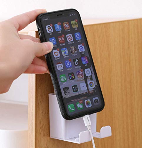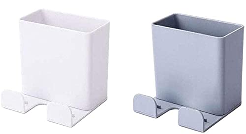 LuoCoCo Scatola di immagazzinaggio telecomandata staffa da parete con gancio, portatile ABS scatola multimediale per supporto di ricarica del telefono, aria condizionata/TV telecomando (bianco+grigio)