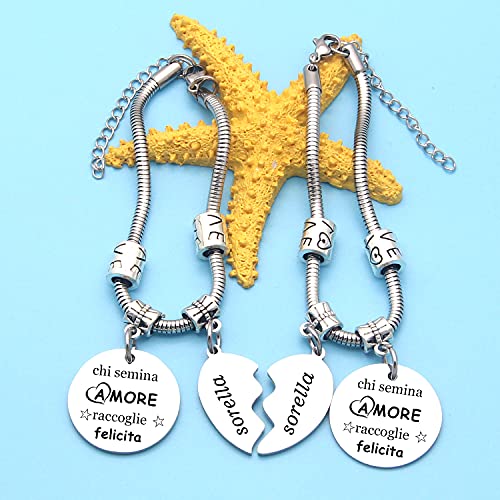 ★Sorella Bracciali Donna, 2pcs Bracciali Ciondolo con Incisione Argento per Regali di Laurea Compleanno 'chi semina amore raccoglie felicita'