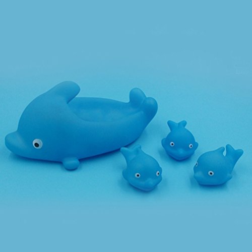 LUOEM 4 pezzi giocattoli da bagno di gomma per i bambini Squeaky mummia Baby Dolphin (blu)