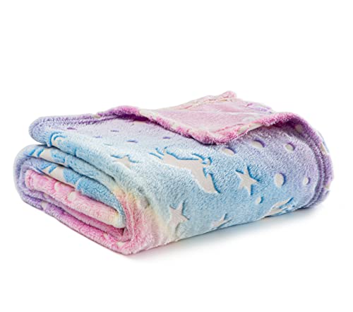 Luogort Coperta per bambini, con unicorno Glow in The Dark, coperta per bambini, morbida coperta in pile con unicorno, regalo per bambini, ragazze, ragazzi, 127 x 150 cm
