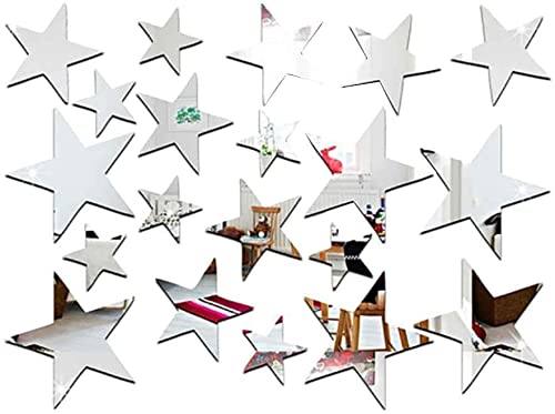 Luokeily 20 adesivi da parete, adesivi a specchio a stella, adesivi da parete, adesivi in acrilico 3D stelle specchiate decalcomanie fai da te per la decorazione della casa carta da parati argento