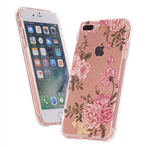 Luolnh Cover iPhone 7 Plus, Custodia Silicone Ultra Trasparente Crystal Di Shock Assorbimento Paraurti in TPU Morbida per iPhone 7 Plus -Fiore Rosa