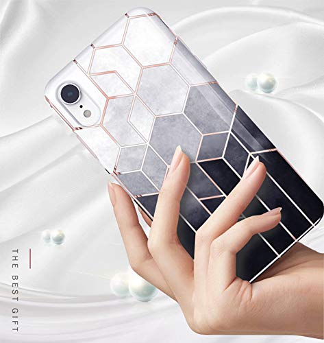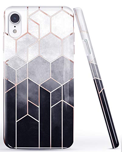Luolnh Custodia per iPhone XR, design marmo antiurto in silicone bumper cover per iPhone XR 6,1 pollici (reticolo nero geometrico)