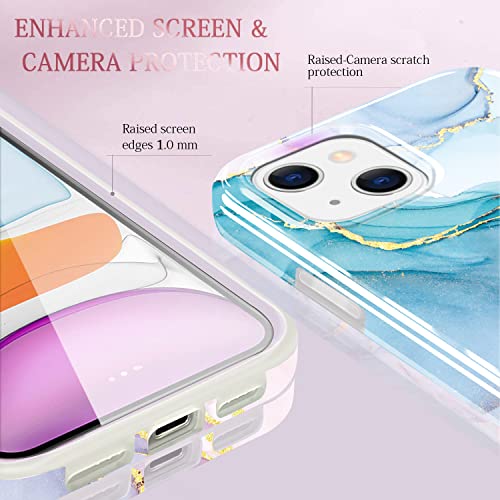 Luolnh Custodia protettiva con glitter oro compatibile con iPhone 14 Plus, design marmo, antiurto, sottile, in morbido silicone TPU per iPhone 14 Plus da 6,7 pollici 2022 (verde acqua)