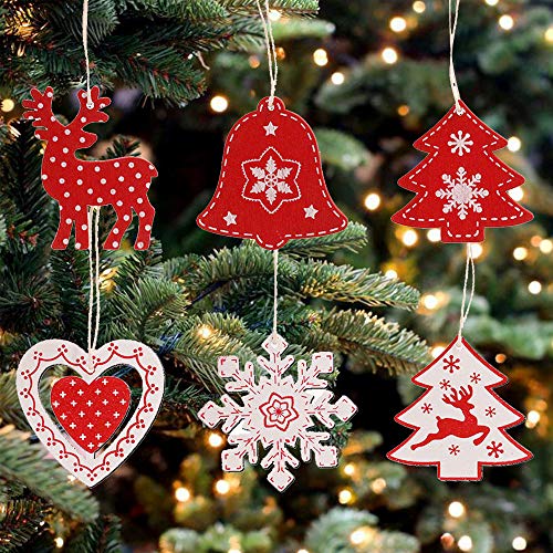LUOLUO 12 Pezzi Ciondoli di Natale in Legno Addobbi Natalizi Abbellimenti per Albero Decorazioni Natalizie Pezzi Natale in Legno Pendente Ciondolo Decorazioni per Albero di Natale