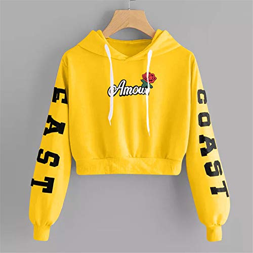 Luoluoluo Felpa con Cappuccio,Felpe Tumblr Ragazza, Felpa Donna Corta Maniche Lunghe Pullover Ragazza Elegante Autunno Inverno (Yellow # Rose, L)