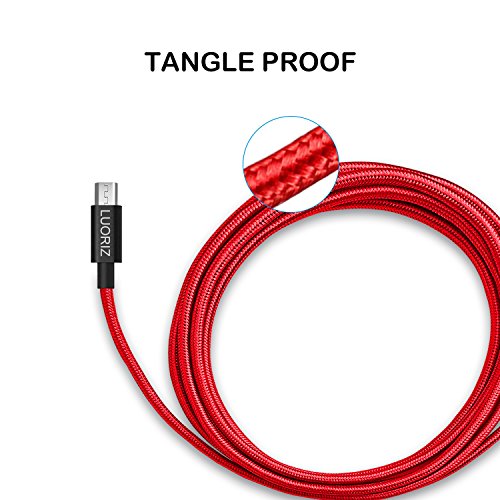 Luoriz, cavo micro USB, cavo di ricarica extra lungo da 2 m, in nylon intrecciato, per Android, Samsung Galaxy, Samsung S6 e S7, Samsung Note, Nexus, LG, Sony, HTC, Motorola, Kindle, Nokia e altri, colore rosso (confezione da 3)