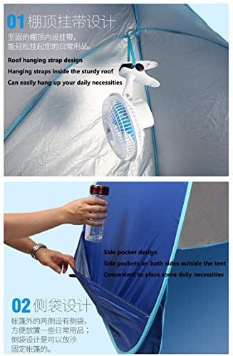 3) Antivento: il design pratico permette di ripararsi dal vento estivo e le tasche esterne di sabbia e i picchetti mantengono la tenda saldamente appesantita fino al suolo