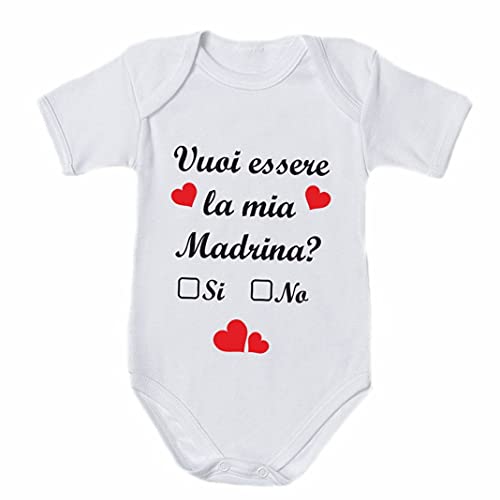 NEW LUPETTO Body bimbo bimba con stampa vuoi essere la mia madrina? - Bianco, 09 MESI
