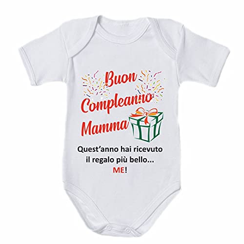 NEW LUPETTO Body tutina neonato bambina bambino buon compleanno mamma - Bianco, 00 MESI